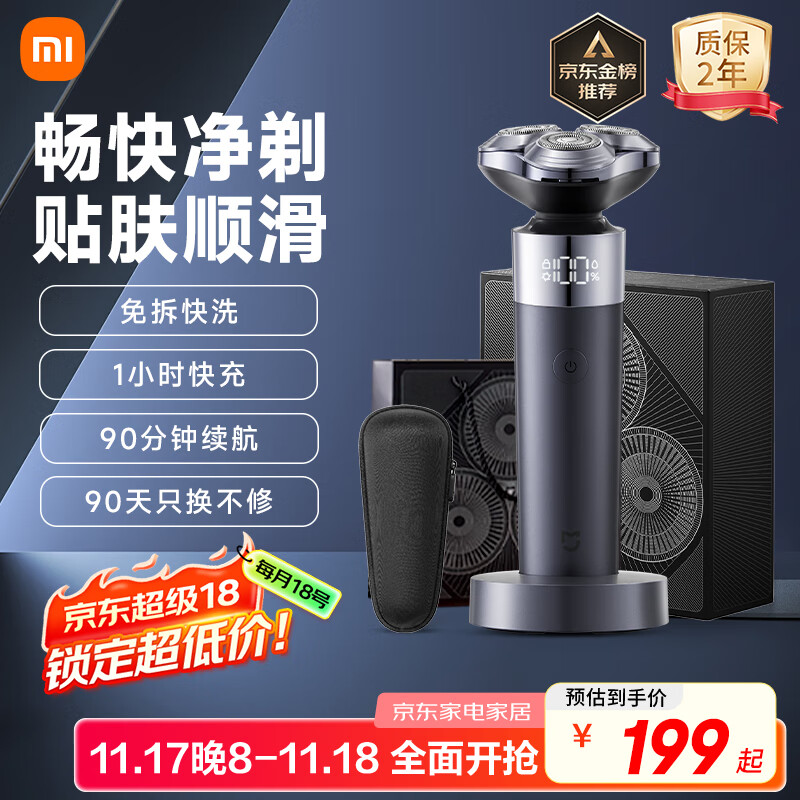 米家电动剃须刀S302专属礼盒小米旋转式刮胡刀 双环弧面刀网免拆快洗刀头浮动贴面剃须 送男友生日礼物