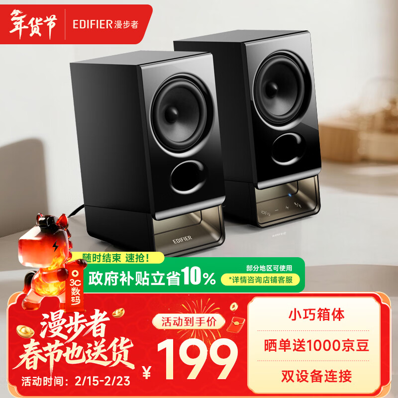 漫步者(EDIFIER)新品R20 桌面2.0电脑音响 无线蓝牙6.0 幻彩氛围灯效 台式机笔记本音箱音响 黑色 新年礼物
