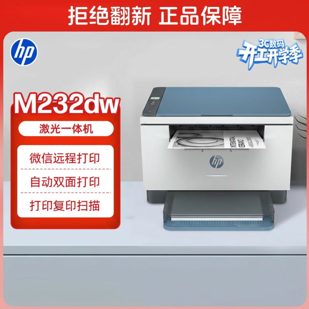 惠普(HP)M232dw 家用激光打印机 自动双面无线学生家用一体机 高速高效(低成本 体积小)