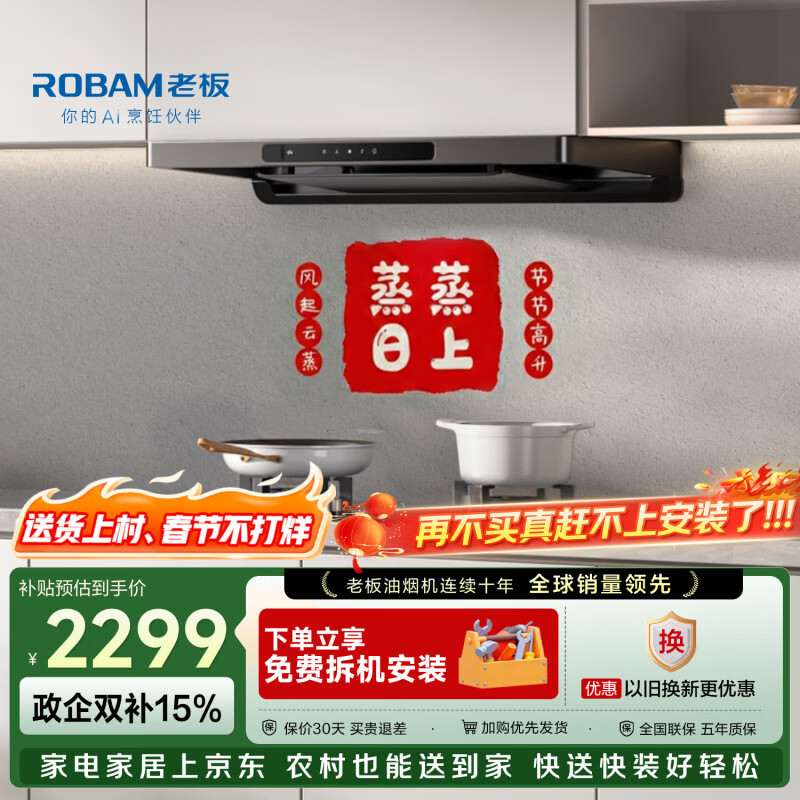 老板F30超薄欧式顶吸抽吸排油烟机24风量家用大吸力一级能效静音可配燃气灶国家补贴60A0S免费上门安装