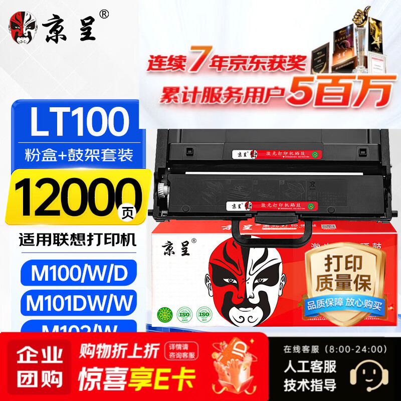 京呈LT100/LD100适用联想lenovom M100w/d墨粉M102w粉盒M101W硒鼓M101DW M1520W领像m1688dw pro打印机墨盒 套装
