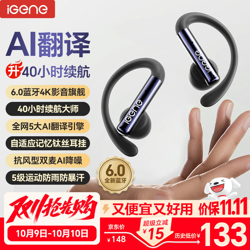 击音【AI翻译+长续航+5g超轻】6.0蓝牙耳机挂耳式骨传导概念无线开放不入耳运动跑步适用苹果华为小米