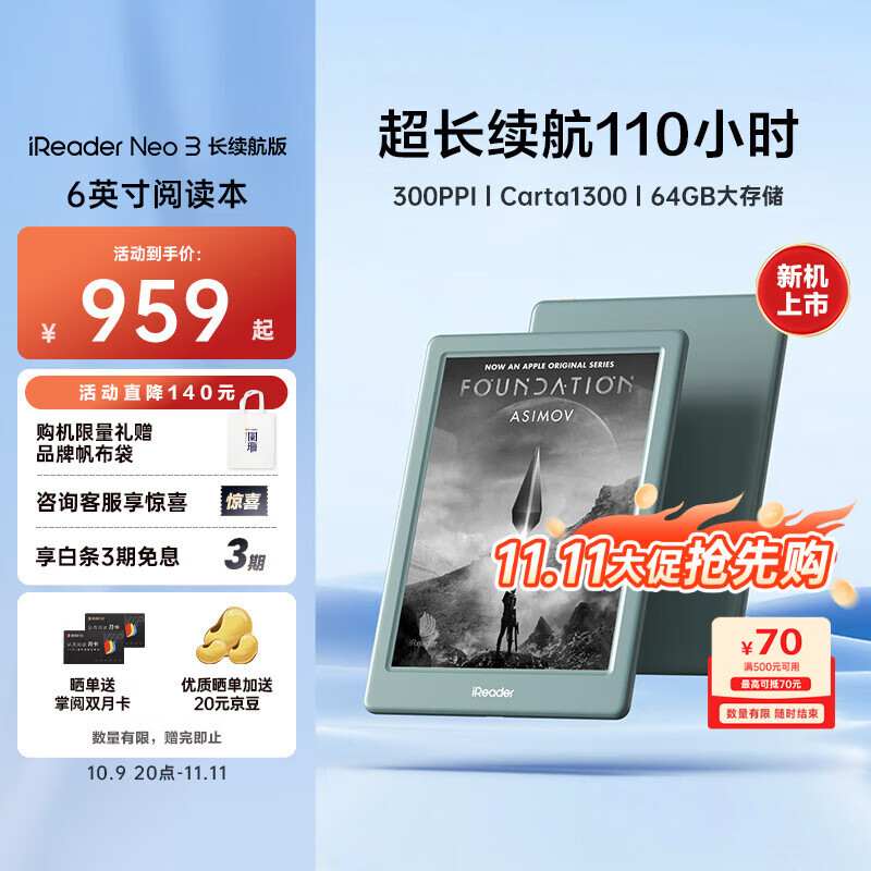 掌阅(iReader)【新品发布】Neo3 长续航版 6英寸电子书 智能阅读器 墨水屏电纸书 看书学习漫画平板电脑 语绿