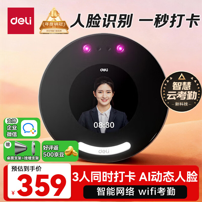 得力考勤机刷脸打卡机 人脸考勤动态人脸识别防照片视频作弊打卡 智能云wifi连接远程在线管理 D50C