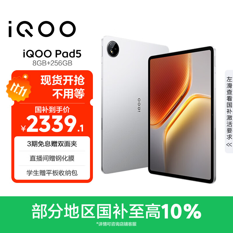 iQOO Pad5 8GB+256GB 银翼 国家补贴 蓝晶×天玑9300+ 12.1英寸高亮电竞屏 平板电脑 vivo