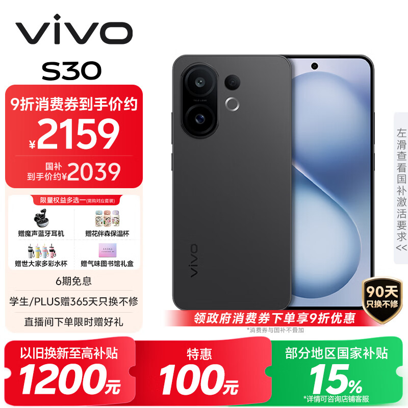 vivo S30 12GB+256GB 可可黑 国家补贴 多彩轻薄直屏 超级潜望长焦 学生 live图 AI手机