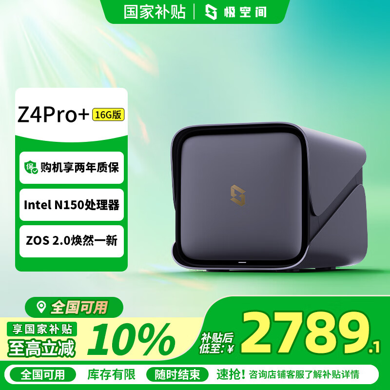 极空间私有云Z4Pro+ 16G版四盘位AI NAS网络存储智能AI娱乐影音企业办公主机家庭云服务器 适用iphone17