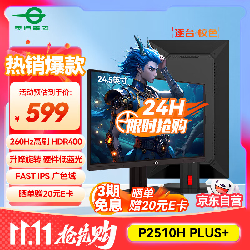 泰坦军团24.5英寸 260Hz超高刷新率 FastIPS硬件低蓝光HDR400广色域 旋转升降 PS5电竞显示器 P2510H PLUS+