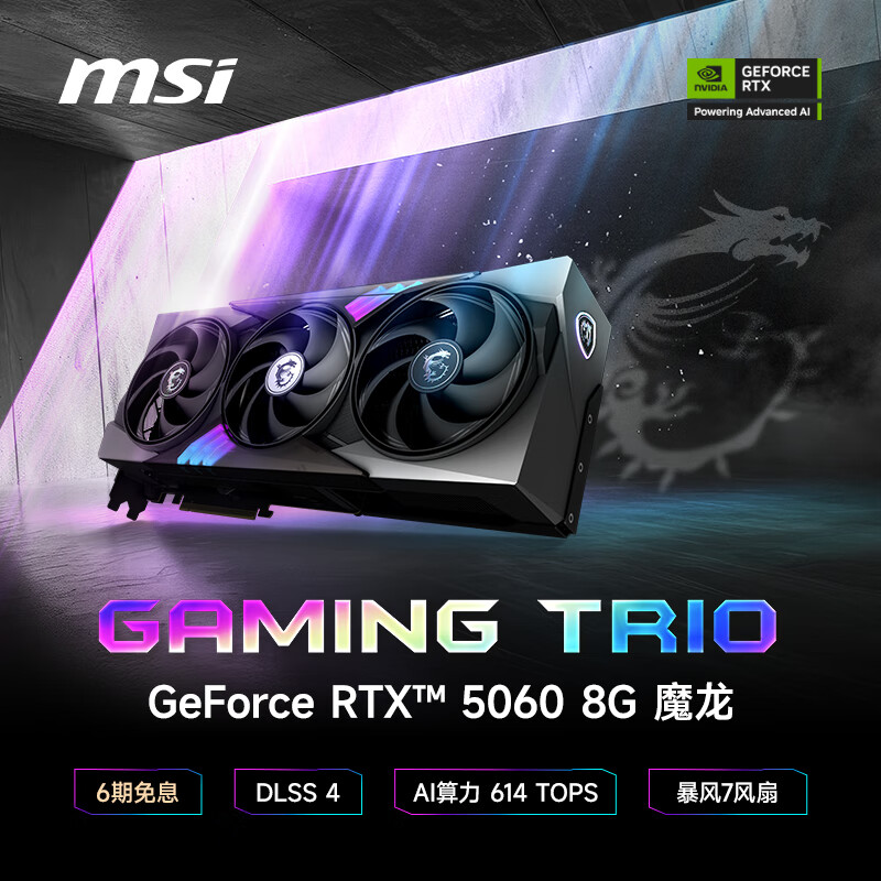 微星(MSI)魔龙 GeForce RTX 5060 8G GAMING TRIO OC AI推理 电竞游戏设计智能学习独立显卡