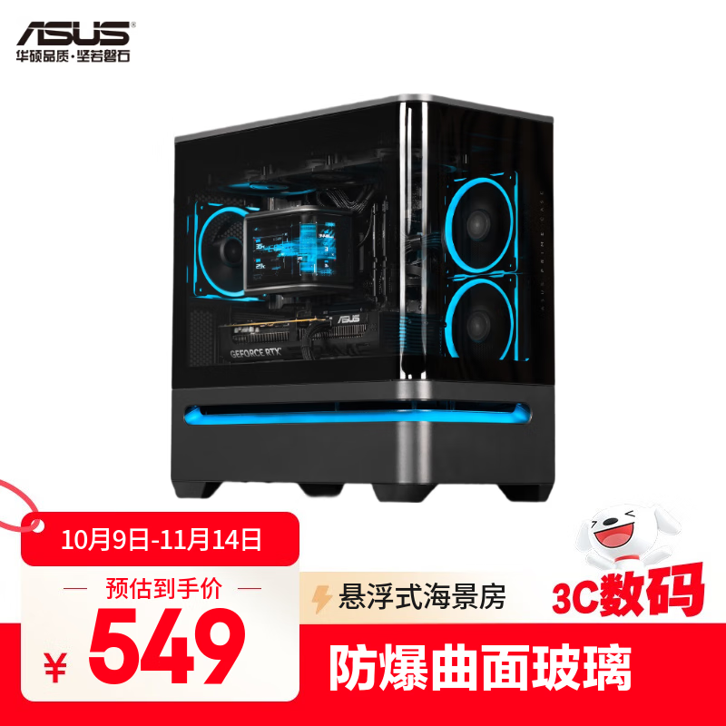 华硕PRIME AP202 灵光岛悬浮式海景房机箱 底部悬浮专利设计/防爆曲面玻璃/免工具拆卸/20G Type-C接口