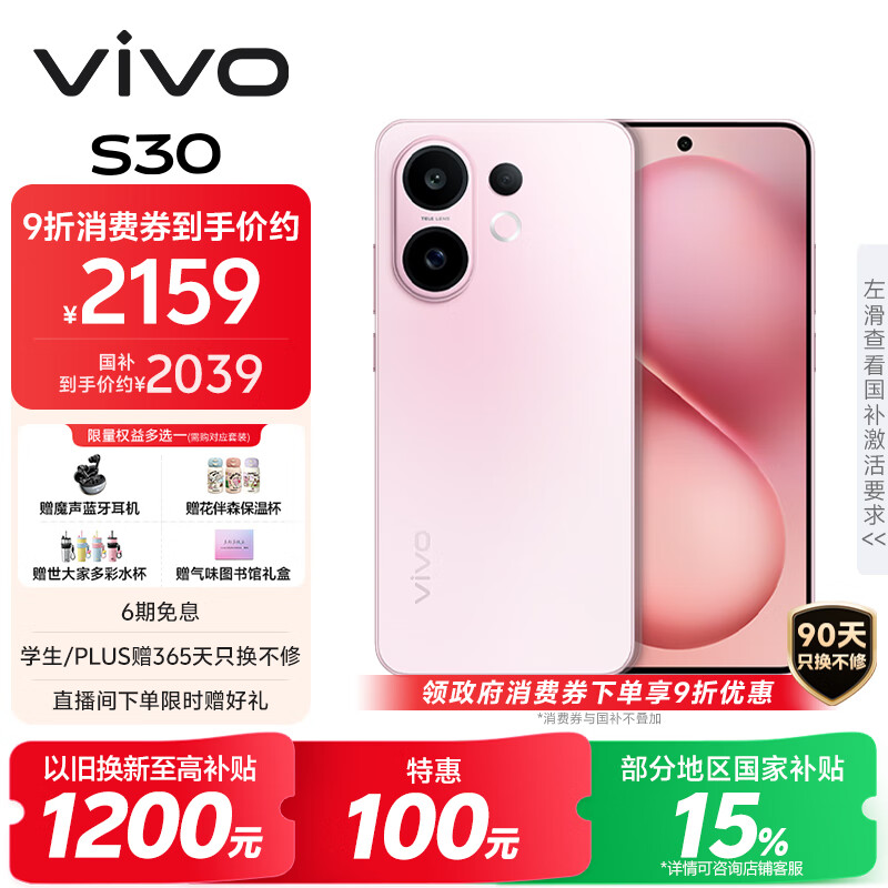 vivo S30 12GB+256GB 桃桃粉 国家补贴 多彩轻薄直屏 超级潜望长焦 学生 live图 AI手机