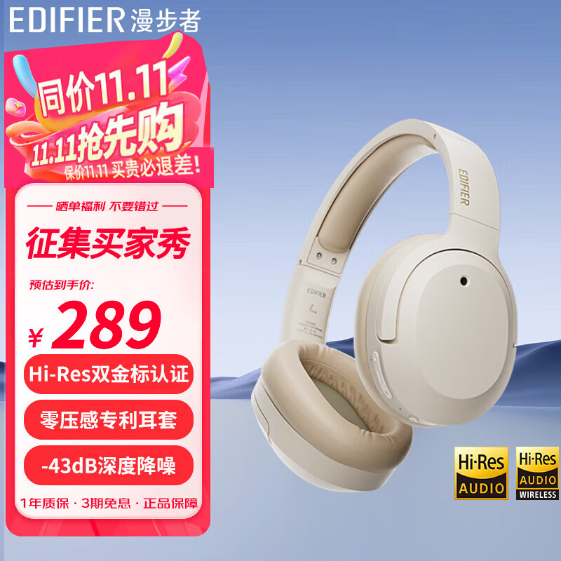 漫步者W820NB双金标版 主动降噪头戴式蓝牙耳机 Hi-Res认证高清音质 男女生送礼物 多系统兼容 W820NB双金标版 云岩白