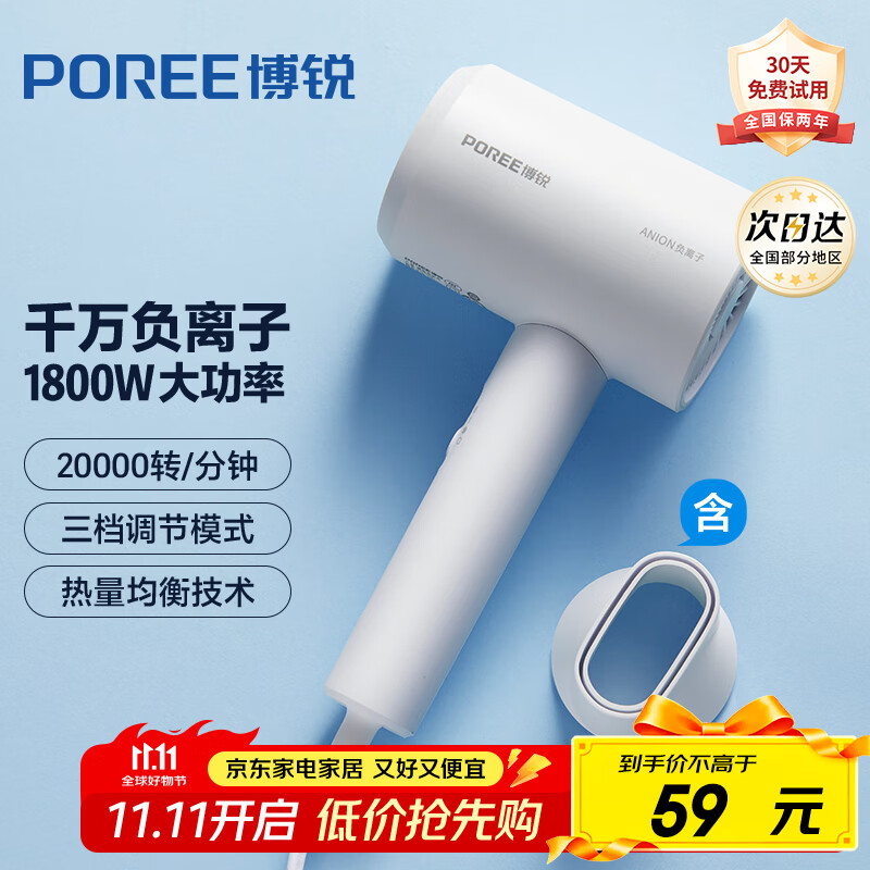 飞科博锐电吹风家用柔风负离子1800W大功率冷热风吹风筒恒温护发低噪快速干发送女友节日生日中秋礼物 【ANION负离子直筒款】-象牙白
