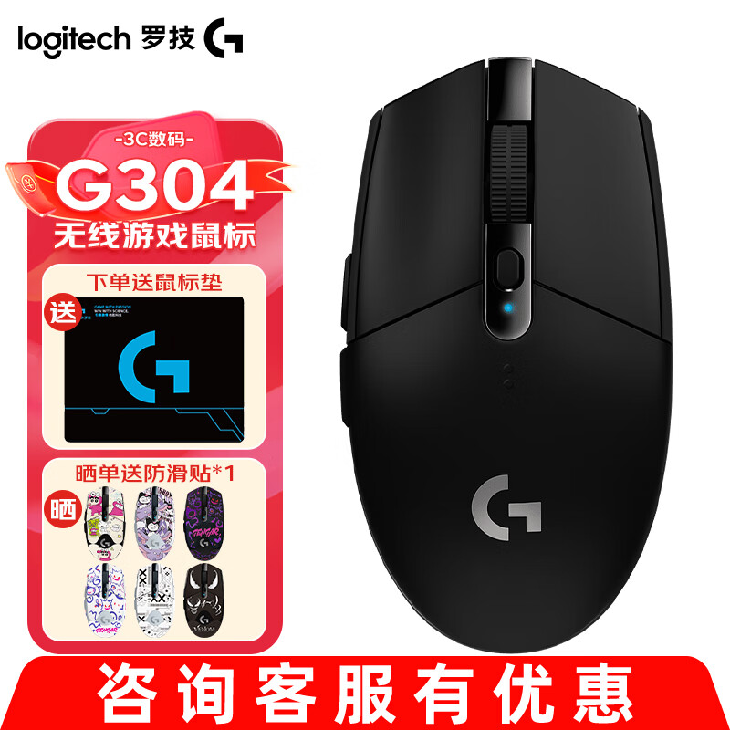 罗技(G)G304无线鼠标游戏电竞轻质便携宏编程自定义网吧台式笔记本电脑吃鸡绝地求生LOL G304黑色