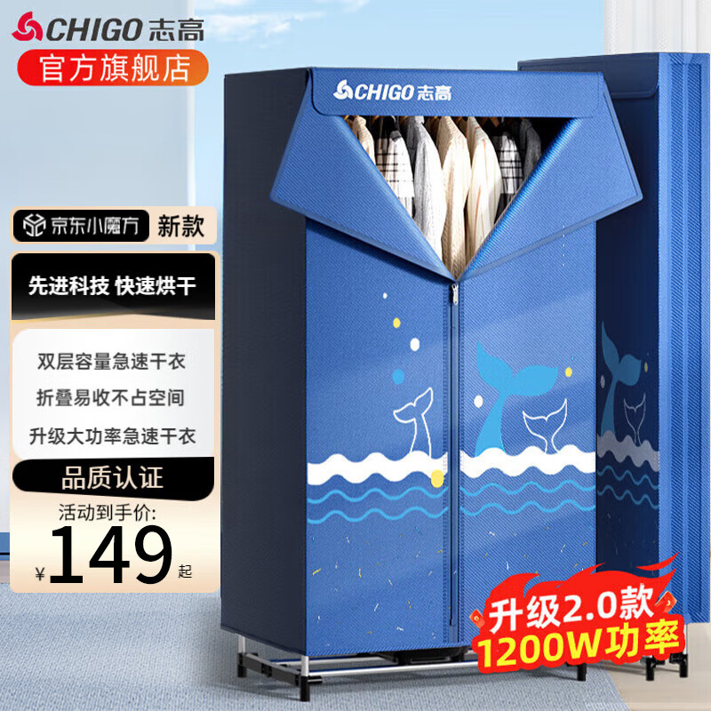 志高(CHIGO) 烘干机衣服家用干衣机小型烘衣机折叠婴儿衣物内衣裤风干机衣柜式大容量定时 【460L+1.5高】双层+1200W+20根钢管