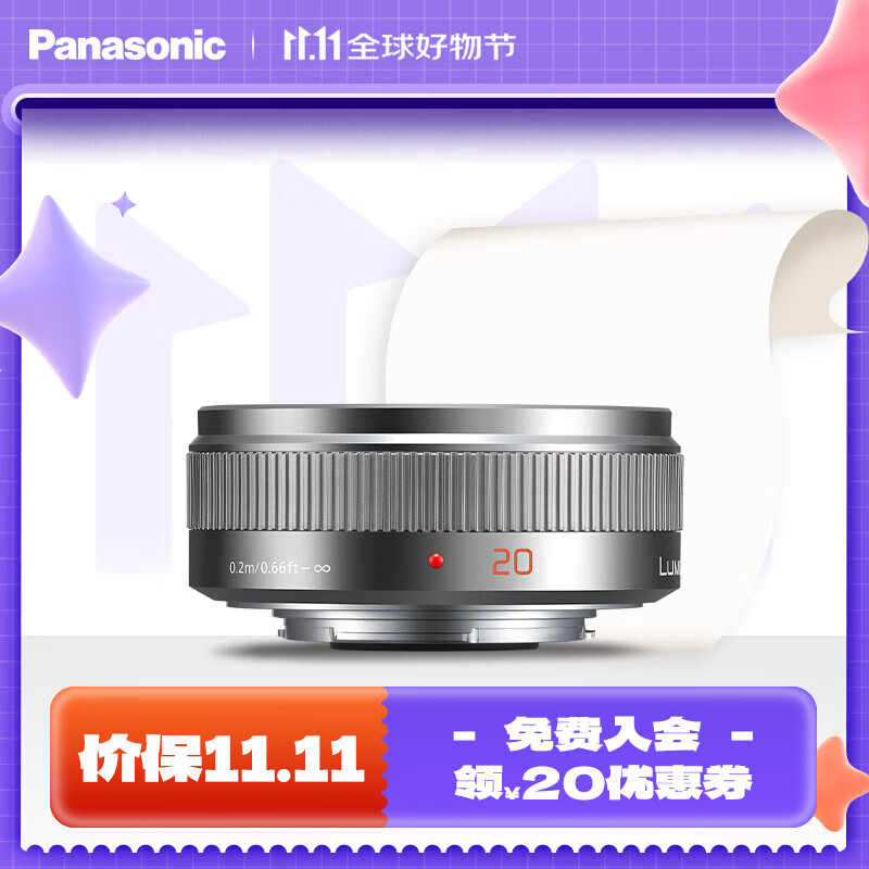 松下(Panasonic) 20mm F1.7二代 定焦镜头 M43卡口 饼干头 便捷小巧精致 颜值在线 银色