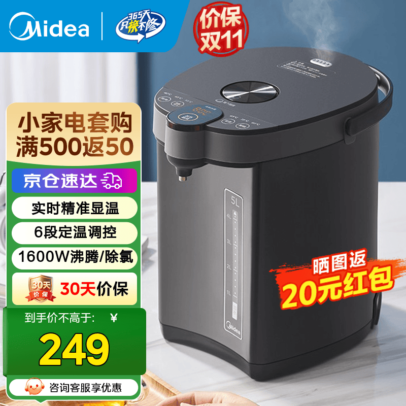 美的(Midea) 电热水瓶 5L升大容量保温除氯电水瓶 家用烧水壶保温一体全自动恒温电热水壶 开水壶 5L 【304食品级材质内胆】