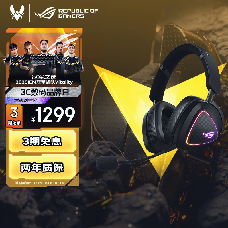 ROG棱镜2 头戴式无线游戏耳机 三模连接 Speednova技术 轻量化 游戏电竞耳机环绕7.1音效 3.5mm暗夜黑