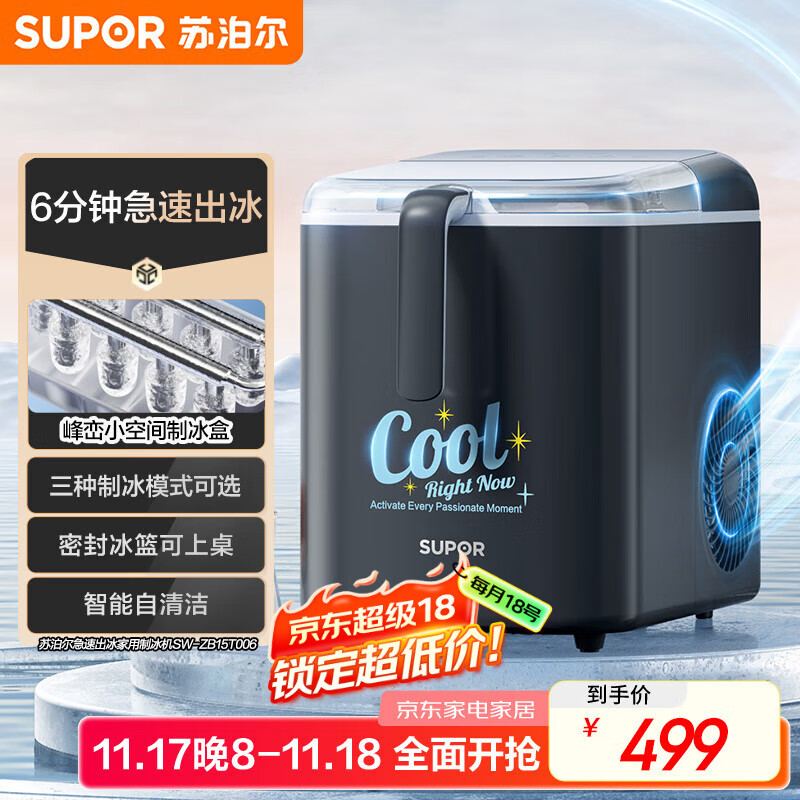 苏泊尔(SUPOR)家用制冰机小型宿舍造冰机 迷你办公室冷饮机急速出冰自清洗SW-ZB15T006配冰篮+冰铲