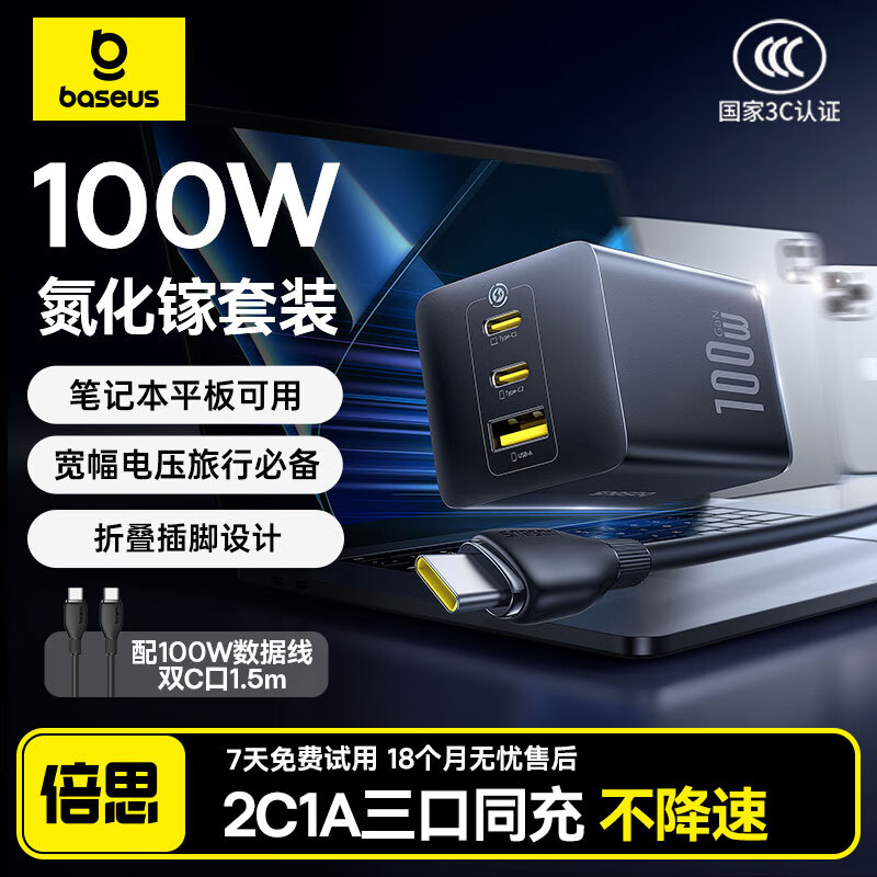 倍思小方块 氮化镓充电器100W 兼容pd65W笔记本电脑Macbook苹果16华为Mate70手机多口Type-C快充头