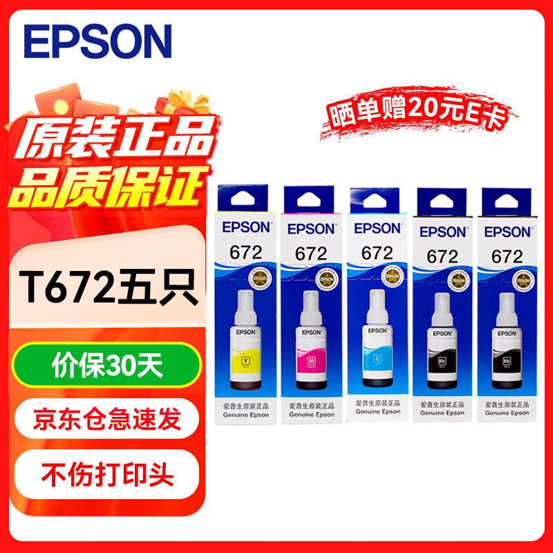 爱普生(EPSON)T672原装墨水五只装 黑*2+CMY*1 适用L101 L201 L351 L565 L455 L130 L310 L360 L380 L1300