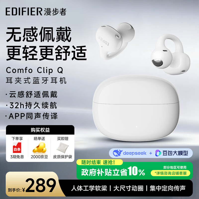 漫步者(EDIFIER)Comfo Clip Q qq耳夹式蓝牙耳机 开放式耳机 翻译耳机 翻译机 适用苹果华为小米OPPO 奶霜白