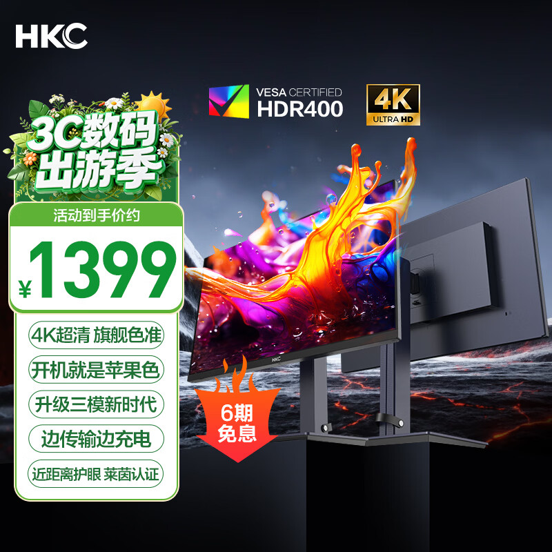 HKC 27英寸4K显示器超清75Hz双模144Hz IPS屏10bit HiDPI技术HDR400 Type-C90W办公mac笔电外接T2755U