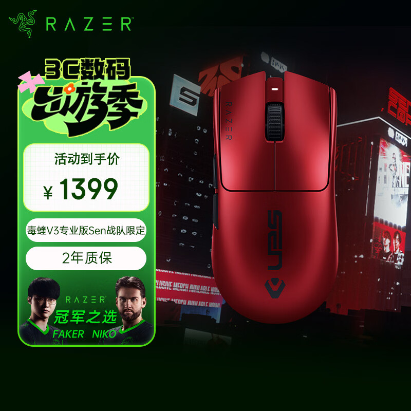 雷蛇(Razer)毒蝰V3pro专业版 Sentinels战队限定款 电竞游戏轻量化 无线鼠标 Sen战队 赤焰红色 cs 无畏契约