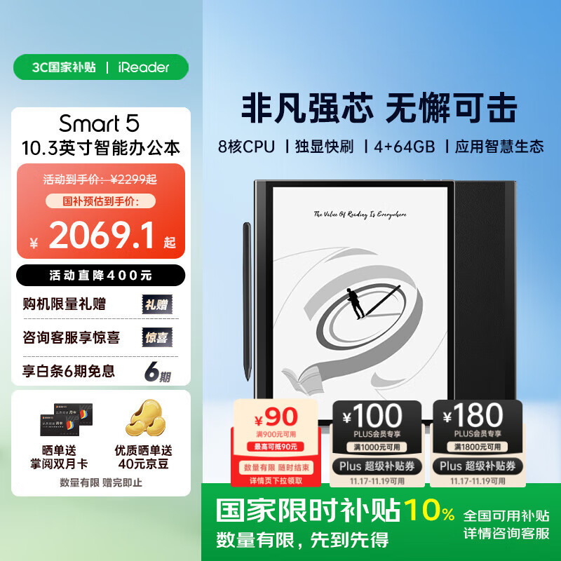 掌阅(iReader) Smart5【国家补贴】10.3英寸智能办公本电子书阅读器 墨水屏电纸书平板手写笔记本 曜岩黑4+64GB