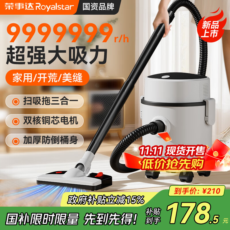 荣事达吸尘器家用大吸力猫毛强力静音工业开荒保洁美缝地毯吸尘机 豪华款【风冷电机999999r】吸拖一体+九件套