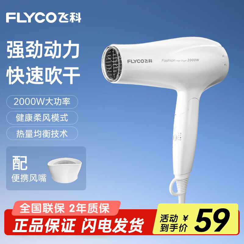 飞科护发电吹风机家用速干便携学生宿舍低噪音冷热风大功率吹风筒/FH6276/6232/PH1628 飞科【2000W大功率】白