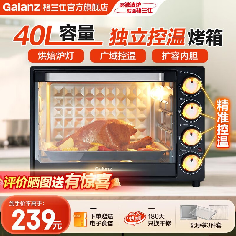 格兰仕(Galanz)【热销TOP】家用电烤箱 40L超大容量 内置可视炉灯 上下独立控温 多层烘焙烤箱 K43 40L