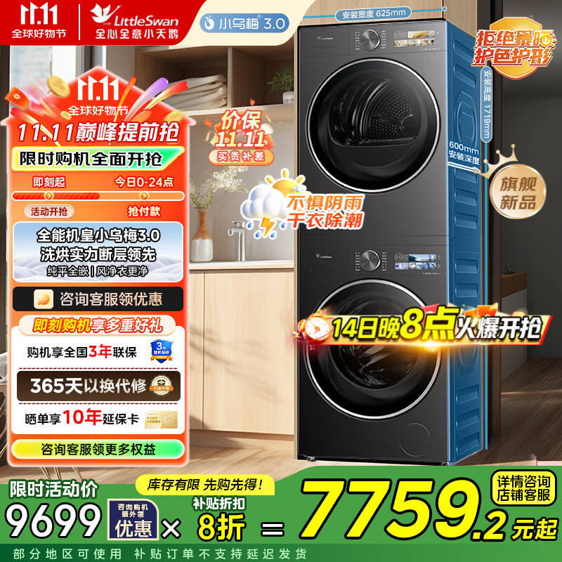 小天鹅(LittleSwan)小乌梅3.0 滚筒洗衣机全自动10KG智能投放 超微净泡纯平全嵌1.21洗净比 以旧换新 家电国家补贴20% 小乌梅3.0|套装行业销冠IVE40+40