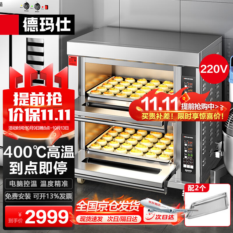 德玛仕(DEMASHI)大型烘焙烤箱商用 烤鸡烤鸡翅披萨面包蛋糕地瓜烧饼商用电烤箱 两层两盘DKL-102D-K1【免费安装】