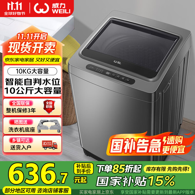 威力(WEILI)10公斤 波轮洗衣机全自动智能称重 13分钟快洗 护衣内筒 防锈箱体 钛金灰 XQB100-10018A 国家补贴