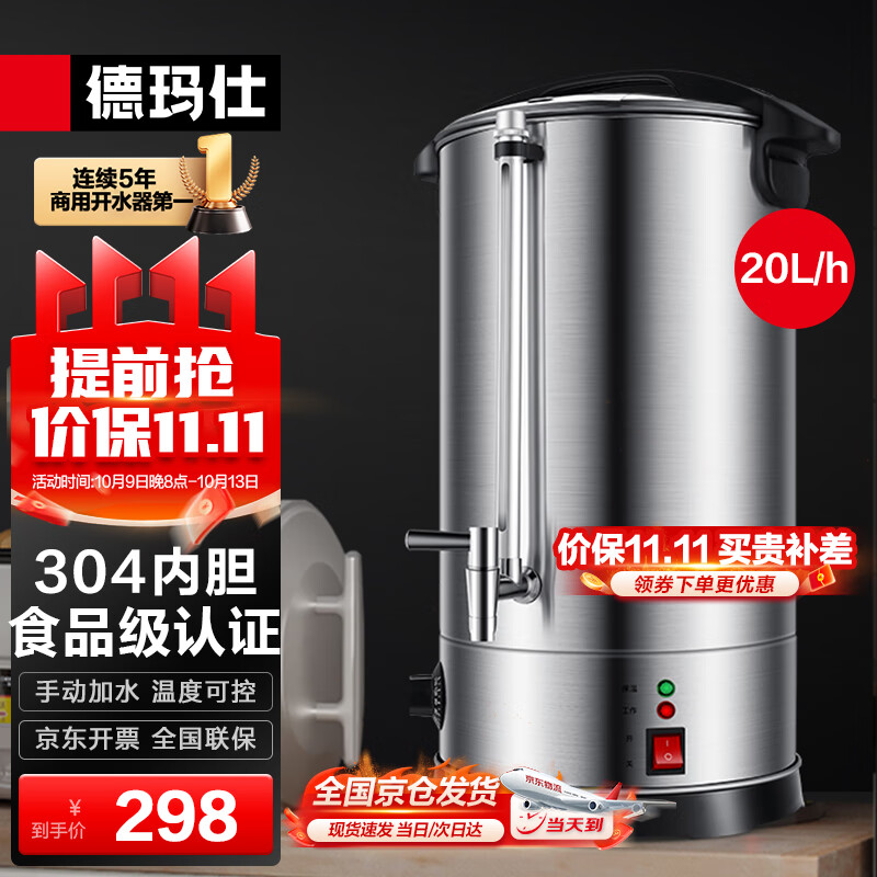 德玛仕(DEMASHI)电热开水桶商用 直饮水机烧水桶 奶茶保温桶烧水器开水器烧水壶电热水桶 KST-20L