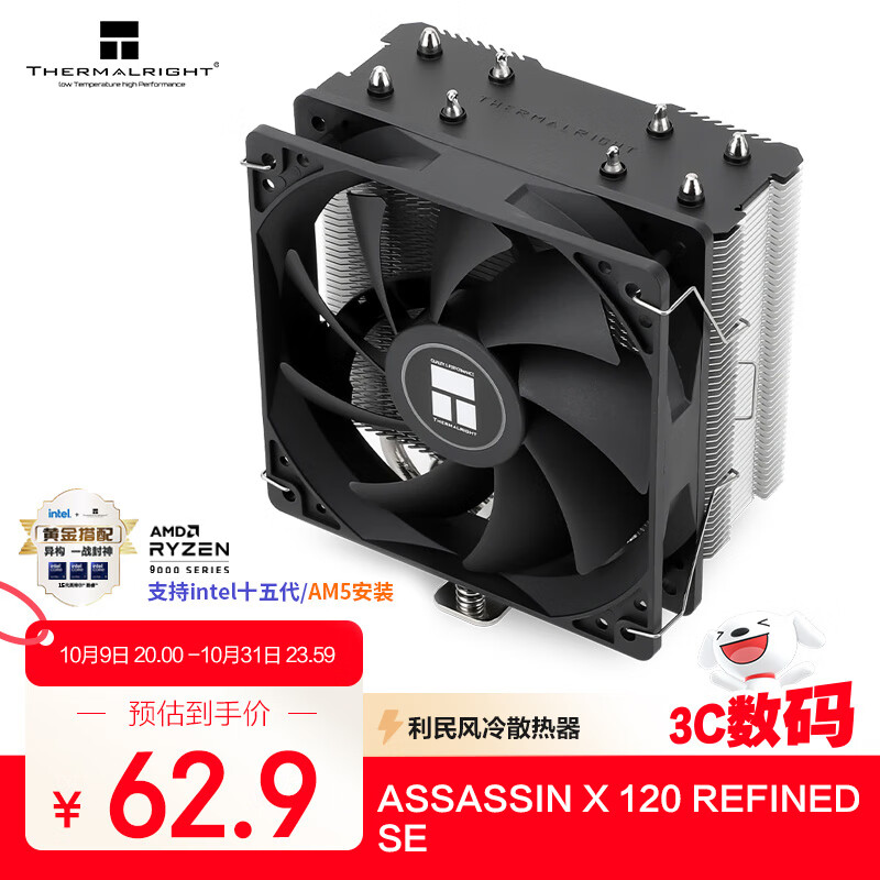 Thermalright(利民)Assassin X 120 Refined SE 风冷散热器 AGHP逆重力四热管支持 12CM风扇 AX120 R SE