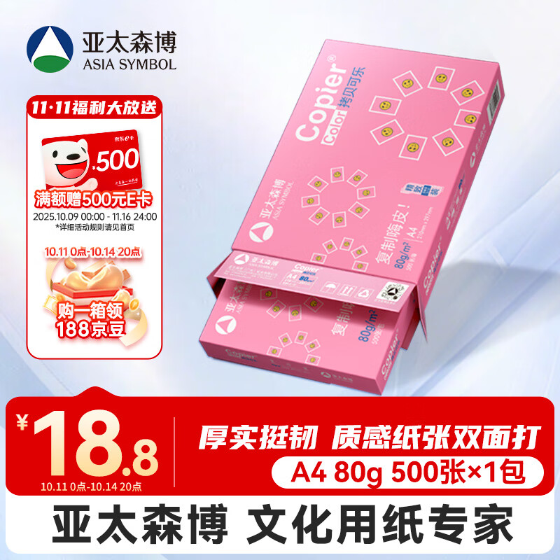 亚太森博拷贝可乐A4打印纸 80g单包装 500张复印纸 双面打印资料 字迹清晰 不透印不卡纸【品质热销款】