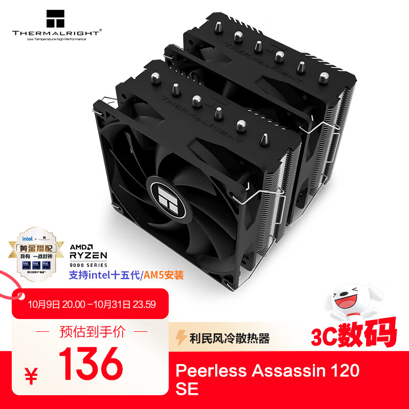 Thermalright(利民) Peerless Assassin 120 SE 逆重力6热管 风冷散热器 双塔逆转双C12C风扇 PA120 SE
