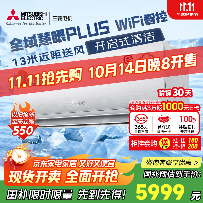 三菱电机(Mitsubishi Electric)KY系列1.5匹 新一级能效14-21㎡适用舒适风 空调省电挂机国家补贴开启式清洁全域慧眼MSZ-KY12VFK