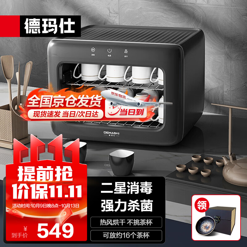 德玛仕(DEMASHI)茶杯消毒柜 茶具消毒柜办公室用小型迷你家用水杯子消毒桌面台面桌面茶杯柜 XDZ28D-2
