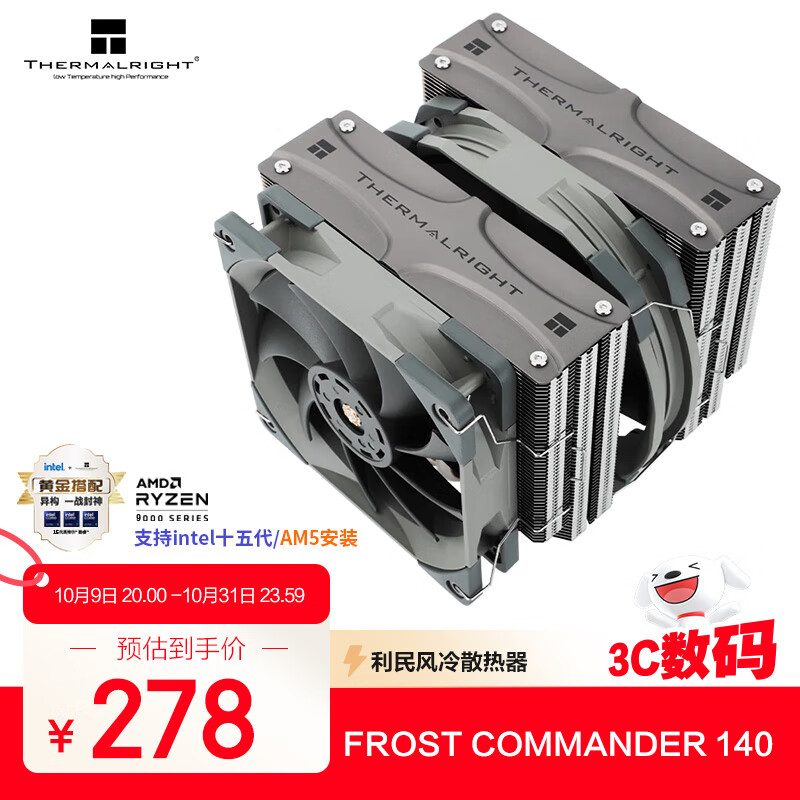 Thermalright(利民)Frost Commander 140 冰封统领 8mmAGHP4.0 五热管全电镀回流焊风冷散热器 2次动平衡 FC140