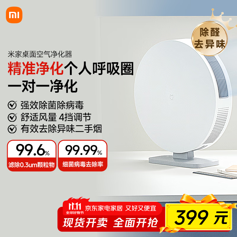 米家小米桌面空气净化器 高精度滤网 双重净化涂层米家APP智能操控AC-M9-SC