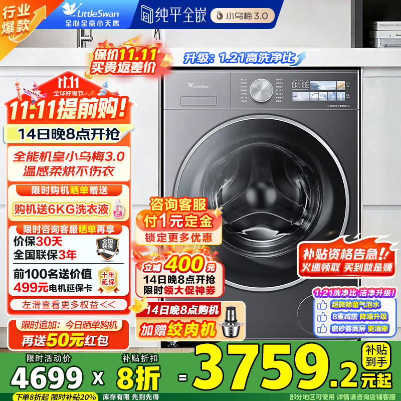 小天鹅(LittleSwan)滚筒洗衣机全自动家用 带烘干洗烘一体【小乌梅3.0】10公斤 纯平全嵌 超薄 一级能效 国家补贴20% TD10VE40