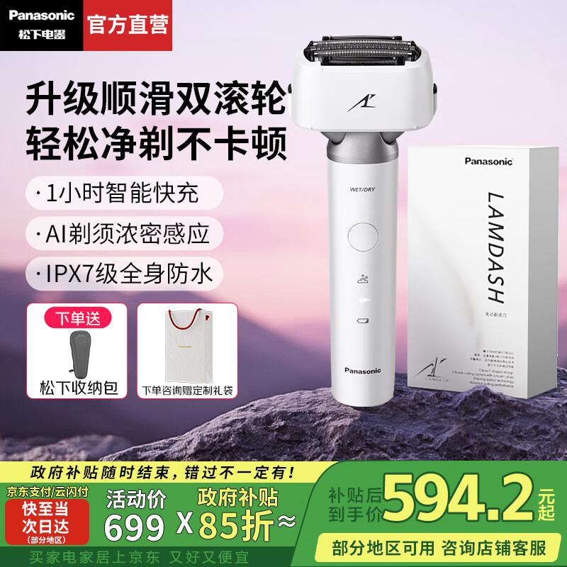 松下(Panasonic)【国家补贴】小锤子3.0电动剃须刀刮胡往复式智能便携胡须刀全身水洗送男士父亲生日礼物高档LM36 抗菌升级小锤子3.0丨流光白 LM36