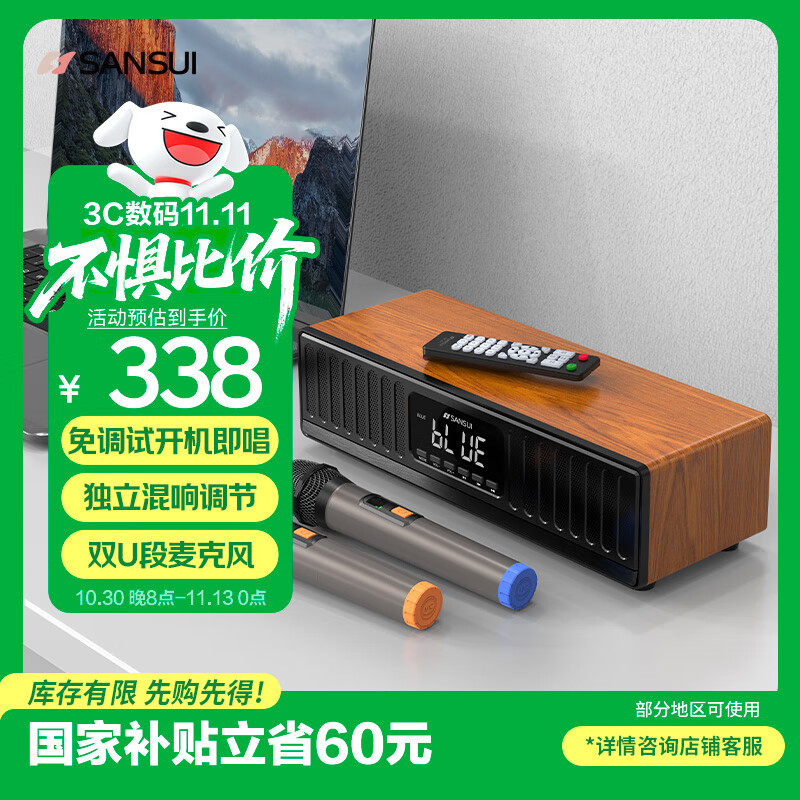 山水(SANSUI)N11家庭ktv音响套装家用卡拉ok一体机连接电视桌面专业唱歌k歌专用音响大功率高音质蓝牙音箱 木纹