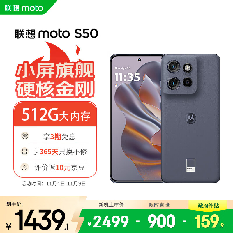 摩托罗拉 联想moto S50 1.5K旗舰级小直屏 索尼全场景三摄 应用六开 5GAI手机 12+512GB 花木蓝