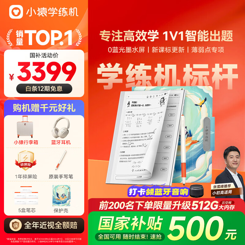 小猿学练机S2扶摇直上【补贴省500元】以学促练精准学练AI学习机 20亿题库0蓝光墨水屏 10.3英寸64G