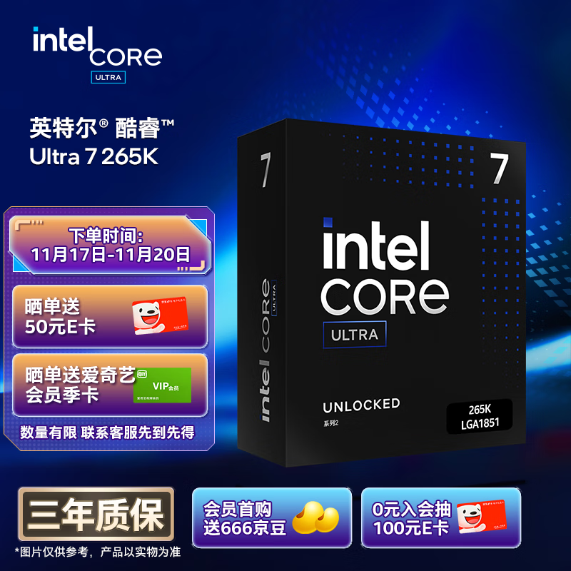 英特尔(Intel)酷睿 Ultra 7 265K 台式机处理器 20核20线程 盒装CPU套装 游戏电竞办公 畅玩三角洲行动