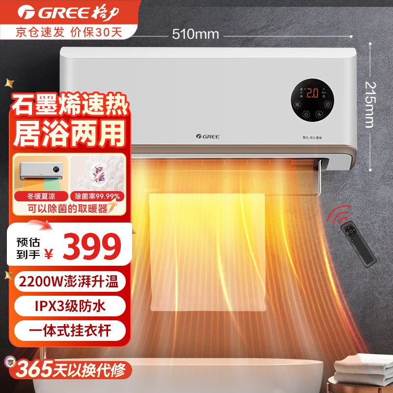 格力(GREE)石墨烯暖风机家用壁挂式速热电暖风取暖器 浴室防水热风机居浴两用浴霸电暖气可烘衣暖毛巾电暖器 NFBC-X7022B